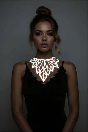 Beyaz Reflektörlü Büyük Yaprak Choker Kolye, Tarz Lazer Kesim Kolye - APFT1417