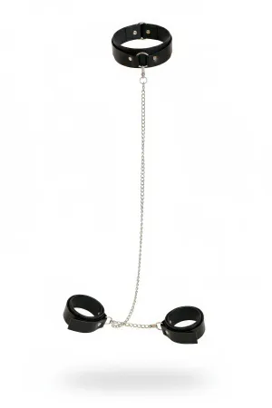 Siyah Seksi Aksesuar Deri Boyunluklu Zincirli Kelepçe Seti - APFT1247