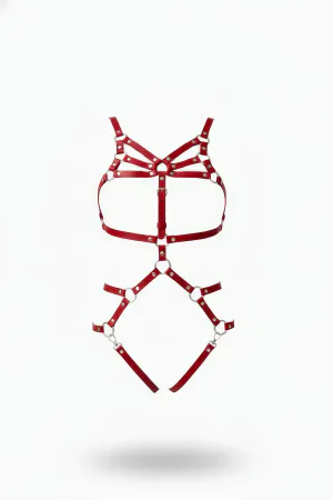 Büyük Beden Kırmızı Kadın Tam Vücut Deri Harness Fantazi Giyim - APFT295