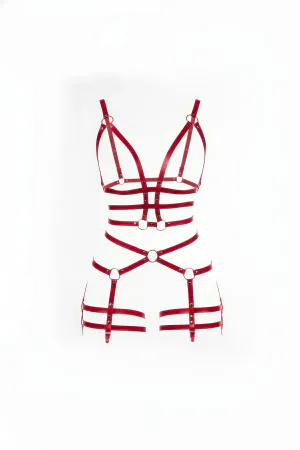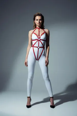 Kırmızı Body Harness Suni Deri Tüm Vücut Halka Detaylı - APFT820