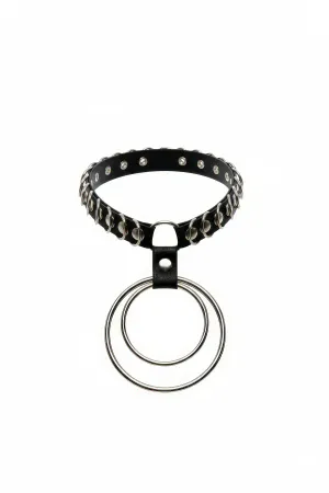 Büyük Ve Küçük Halka Detaylı Ayarlı Deri Choker - APFT673