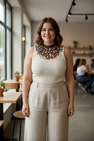 Büyük Beden Siyah Kadın Choker Lazer Kesim Estetik Kombin Tamamlayıcı - APFT1407