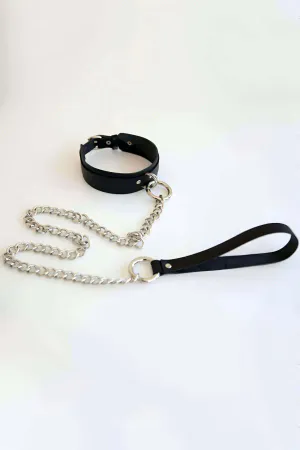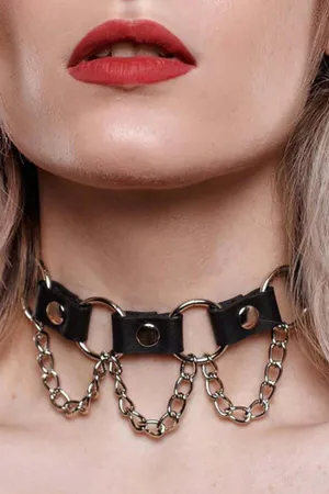 Zincir Ve Halka Detaylı Deri Choker Tasma Boyunluk Aksesuar - APFT662