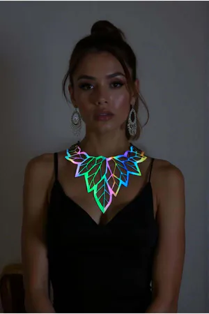 Rainbow Reflektörlü Büyük Yaprak Choker Kolye, Tarz Lazer Kesim Kolye - APFT1417