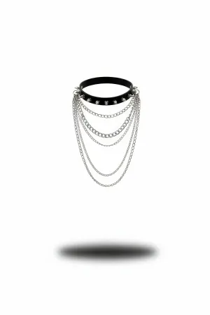 Siyah Choker Deri Zincir Bağlantılı Halka Detaylı - APFT248