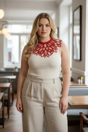 Büyük Beden Kırmızı Kadın Choker Lazer Kesim Detaylı Abiye Şıklığı - APFT1407