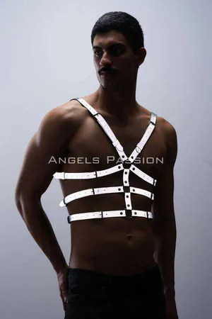Karanlıkta Parlayan - Reflektörlü Pantolon Askısı, Erkek Göğüs Harness - Reflektörlü Clubwear - APFTM135