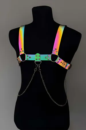 Rainbow Reflektörlü (Karanlıkta Parlayan) Zincir Detaylı Şık Erkek Göğüs Harness, Reflektörlü Clubwear - APFTM109
