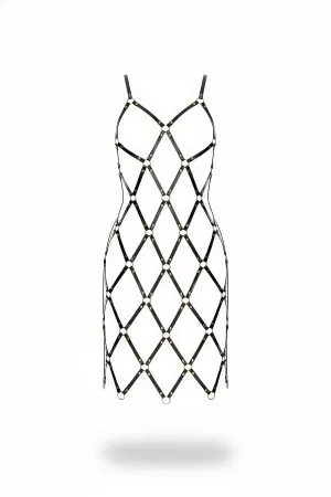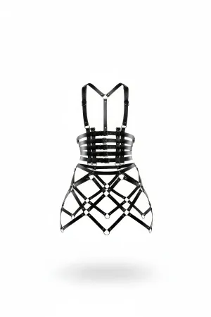 Büyük Beden Siyah Etek Kafes Detaylı Deri Harness Aksesuar - APFT785