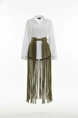 Büyük Beden Haki Deri Püskül Detaylı Yüksek Bel Etek - APFT1003