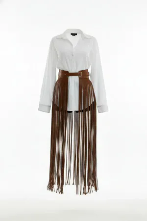 Yüksek Bel Şık Deri Püsküllü Seksi Etek - APFT1003