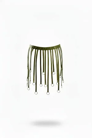Haki Etek Suni Deri Etek Çoklu Şeritli Halkalı - APFT579