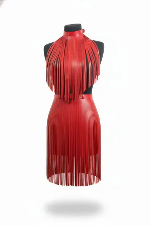 Kırmızı Etek Deri Püsküllü Uzun Maksi Kemerli - APFT1003