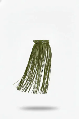 Haki Etek Uzun Püsküllü Suni Deri Etek - APFT1090