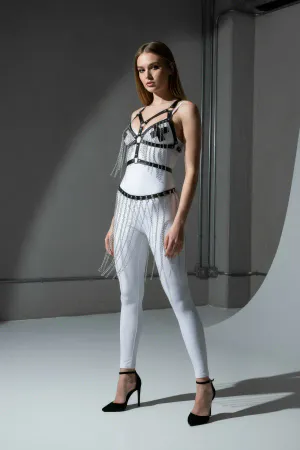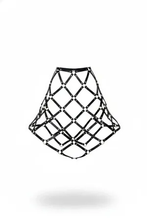 Kafes Tasarımlı Askılı Mini Elbise Üzeri Deri Harness - APFT1252