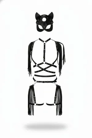 Siyah Etek Deri Püsküllü Tokalı Vücut Aksesuarı Seti - APFT892