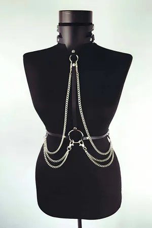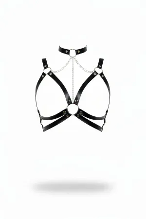 Zincir Detaylı Şık Deri Göğüs Harness, Büstiyer Harness, Deri Göğüs Harness- APFT1399