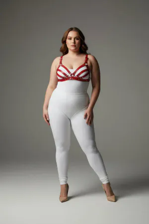Büyük Beden Kırmızı Kadın Harness Takım Deri Halka Detaylı Fantezi Aksesuar - APFT1296