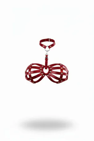 Kırmızı Göğüs Harness Deri Kafesli Zımba Detaylı Boyunluk - APFT224