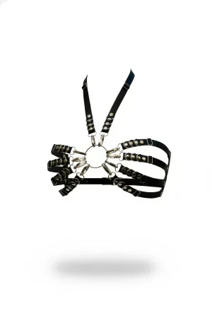 Siyah Göğüs Harness Suni Deri Metal Halka Detaylı - APFT564