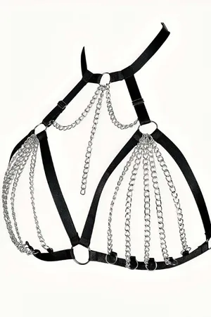 Zincirli Lastik Seksi Göğüs Harness - APFT805