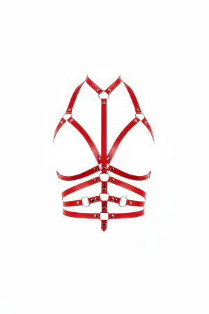 Kırmızı Göğüs Harness Deri Halka Detaylı Vücut Aksesuarı - APFT24