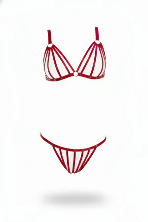 Kırmızı Harness Takım Metal Detaylı Bantlı Sütyen Külot - APFT555