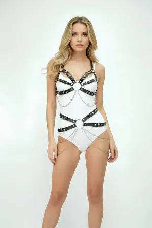 Siyah Harness Takım Zincir Detaylı Tokalı Vücut Aksesuarı - APFT1260
