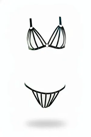 Siyah Harness Takım Siyah Bant Detaylı Tanga Kesim - APFT555