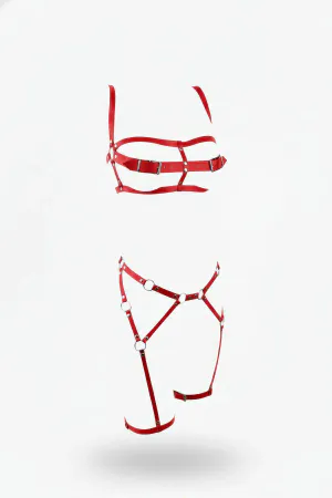 Kırmızı Harness Takım Deri Halka Detaylı Vücut Kemeri - APFT560