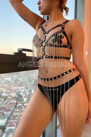 Zincir Detaylı Şık ve Sert Deri Harness Fantezi İç Giyim Takım - APFT1084