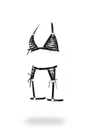 Üçgen Detaylı Seksi Deri Sütyen Takım - APFT464