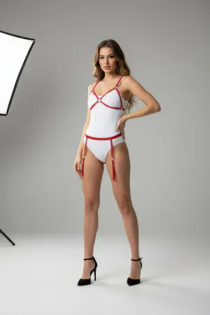 Kırmızı Harness Takım Halka Detaylı Vücut Kemeri - APFT228
