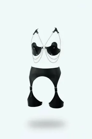 Siyah Harness Takım Zincir Detaylı Suni Deri Jartiyerli - APFT1221