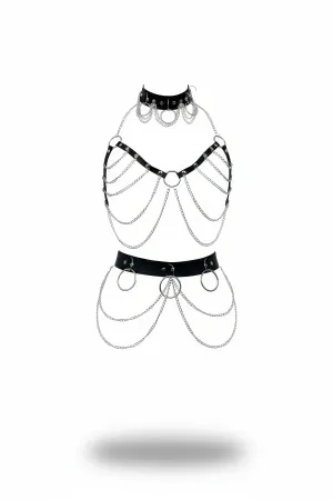 Siyah Harness Takım Deri Zincir Detaylı Vücut Aksesuarı - APFT454