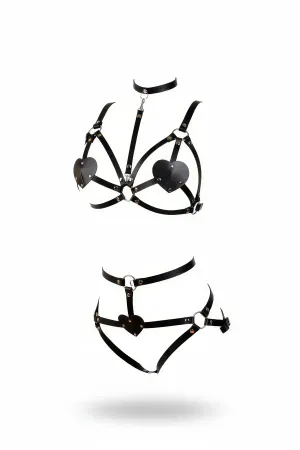 Siyah Harness Takım Kalp Detaylı Deri Vücut Aksesuarı - APFT467