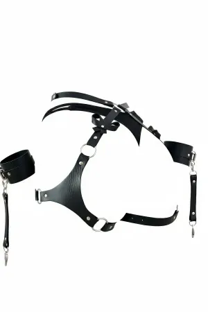 Deri Fantezi Set, Sert ve Şık Deri Kelepçeli Harness Takım - APFT869