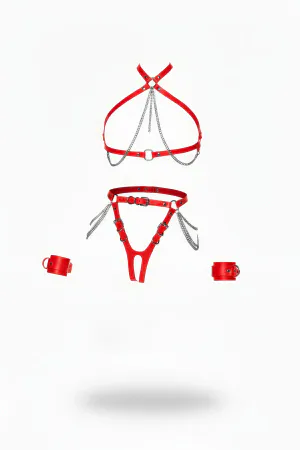 Kırmızı Harness Takım Zincir Detaylı 4 Parça Vücut Seti - APFT1224