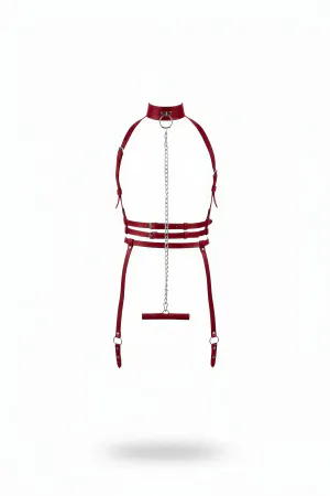 Bordo Harness Takım Zincir Detaylı Boyunluklu Vücut Aksesuarı - APFT233