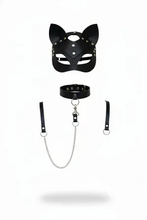 Siyah Harness Takım Kedi Maskeli Zincir Detaylı - APFT784