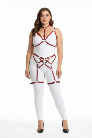 Büyük Beden Kırmızı Kadın Deri Fantazi Harness Takım Jartiyerli - APFT507