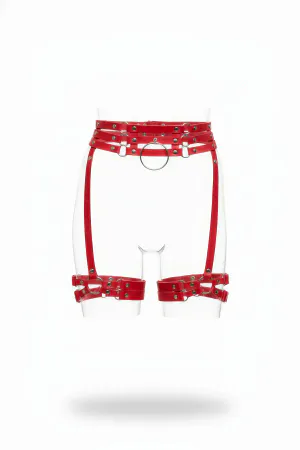 Kırmızı Jartiyer Harness Tam Beden Deri Metal Halka Detaylı - APFT750