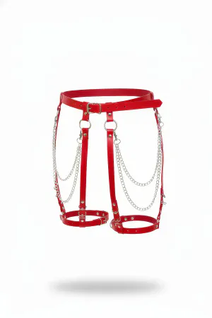 Kırmızı Jartiyer Harness Zincir Detaylı Suni Deri Tokalı - APFT958