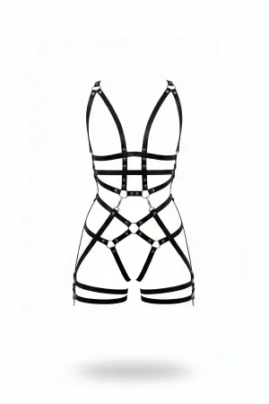Siyah Jartiyer Harness Deri Vücut Kafesi Tam Boy - APFT502