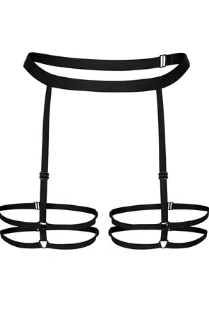 Siyah Kadın Jartiyer Harness Suni Deri Ayarlanabilir Vücut Bacak Aksesuarı - APFT753