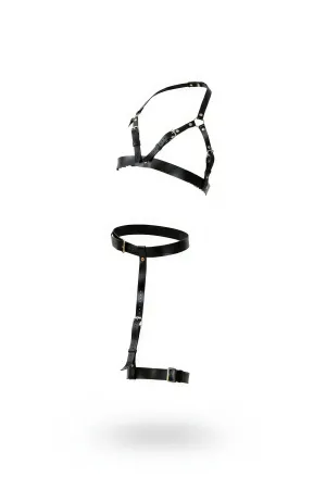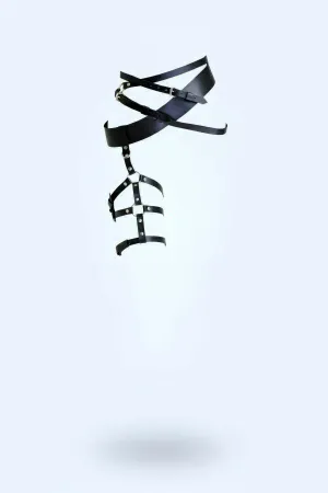 Bacak Detaylı Choker Tasma Kelepçeli Ve Bacak Deri Harness Takım - APFT699
