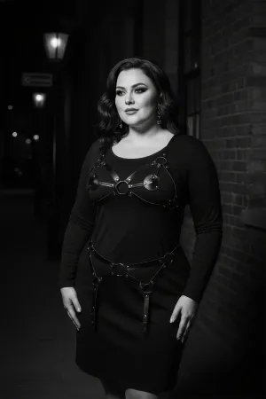 Büyük Beden Siyah Kadın Jartiyer Harness Takım Tasmalı Deri Vücut Aksesuarı - APFT242