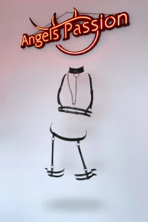 Siyah Jartiyer Harness Zincirli Bel Bacak Kemeri - APFT745