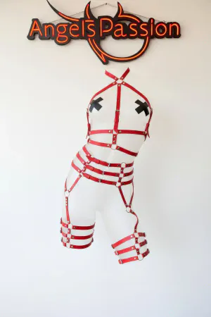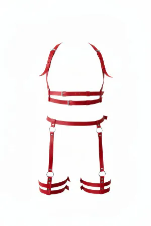 Kırmızı Jartiyer Harness Tüm Vücut Deri Tokalı - APFT524