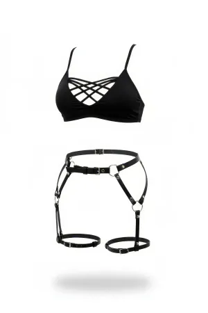 Siyah Jartiyer Harness Deri Kafesli Vücut Aksesuarı - APFT508